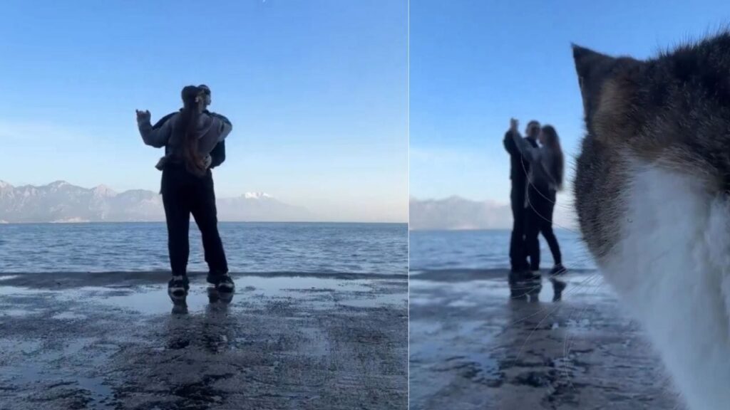 जानवर भी कम शरारती नहीं होते हैं. वो अक्सर इंसानों के कामों के बीच में आ जाते हैं और अपनी हरकत से सब खराब कर देते हैं. आपने देखा होगा कि कई बार जब लोग वीडियो बना रहे होते हैं, तभी जानवर कैमरे के सामने आकर खड़े हो जाते हैं और वीडियो ही खराब कर देते हैं. इन दिनों ऐसा ही एक मजेदार वीडियो सोशल मीडिया पर खूब वायरल हो रहा है. दरअसल, एक कपल समंदर के किनारे रोमांटिक डांस कर रहा था और अपने इस खास पल को कैमरे में रिकॉर्ड कर रहा था, लेकिन तभी एक शरारती बिल्ली आकर कैमरे के सामने खड़ी हो गई और वीडियो का फोकस ही बदल दिया.