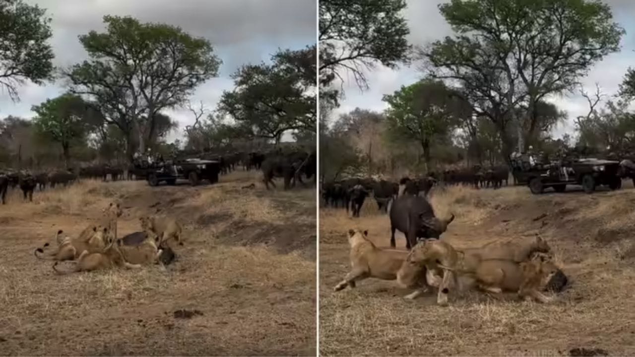 इस अचानक हुए हमले से शेरों में अफरा-तफरी मच जाती है. कई शेर शिकार छोड़कर इधर-उधर भागने लगते हैं. कुछ पीछे हटते हैं, तो कुछ दूरी बनाकर हालात को समझने की कोशिश करते हैं. उस भैंसे की हिम्मत और आक्रामकता ने शेरों की पूरी योजना को बिगाड़ दिया. ऐसा बहुत कम देखने को मिलता है कि एक अकेला भैंसा लगभग 20 शेरों के सामने डटकर खड़ा हो जाए.