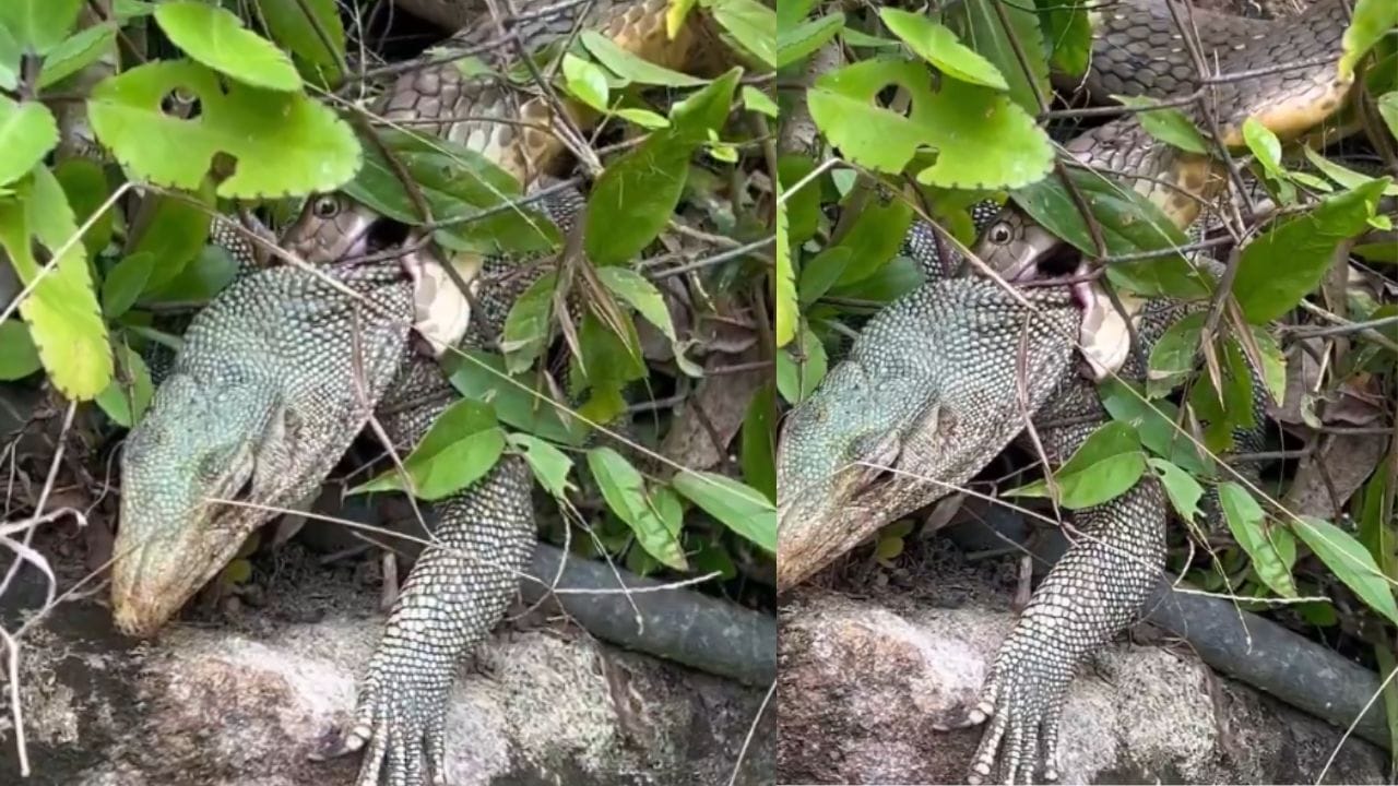 सांप के हत्थे चढ़ी मॉनिटर लिजर्डImage Credit source: X/@AmazingSights